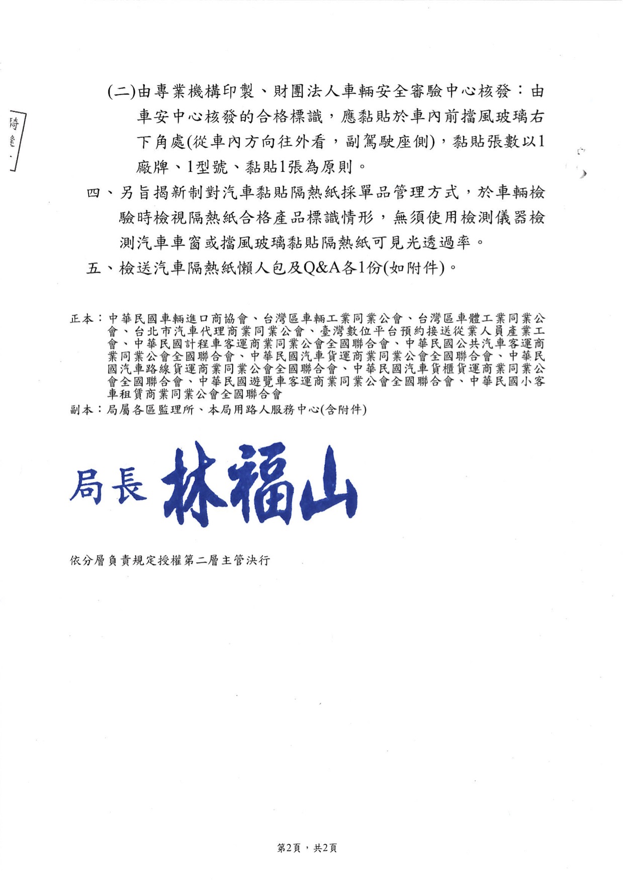 有關汽⾞隔熱紙可⾒光透過率管理新制